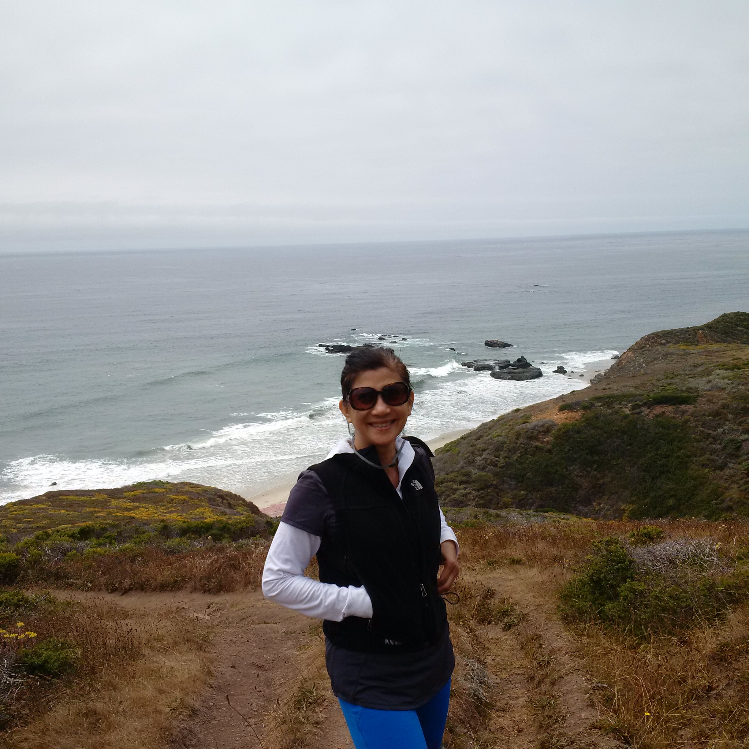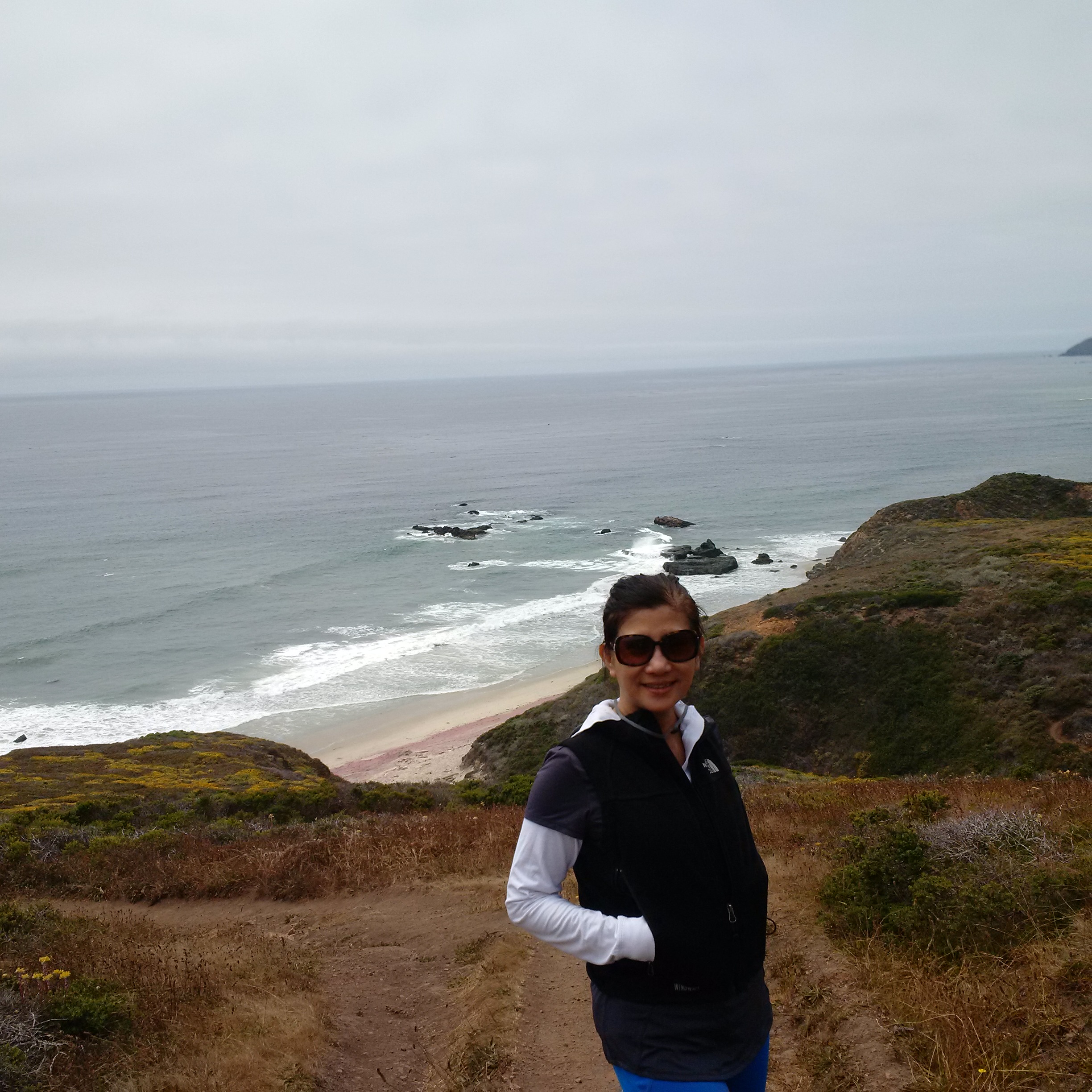 A few steps from the trail head is a low footbridge. Under it flows the crispy clear water of the Big Sur River, a welcoming sight. A mile later, the trail ends at the beach. From here it splits into 2, the Ridge trail to the left and the Bluff trail to the right, forming a loop of approximately 8 miles. The Major suggested that we take the Ridge trail as it goes up an incline and she needed the workout, so we did. The Ridge trail took us up a gentle slope of a thousand foot high hill for 4 winding miles. After an hour or so, we stopped for a modest lunch at a bluff overlooking the ocean, a view-to-kill for. After lunch, we continue our hike and occasionally encounter fellow hikers coming from the opposite direction but none from ours.
